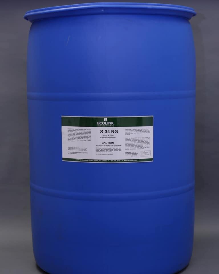The S-34 NG water-based cleaner and degreaser removes grease, oils, wax, carbons, and inks from virtually any surface. Convenient spray and wipe blend requires no mixing or rinsing. Use this cleanser on equipment, fixtures, walls, floors, and any other surface not harmed by water. It is residue free.