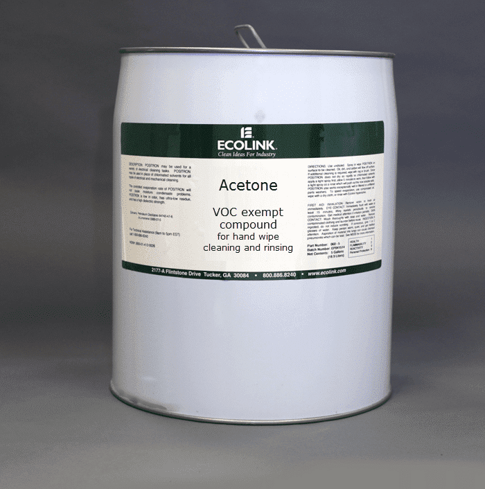Acetone is a VOC exempt compound used for hand wipe cleaning and rinsing.