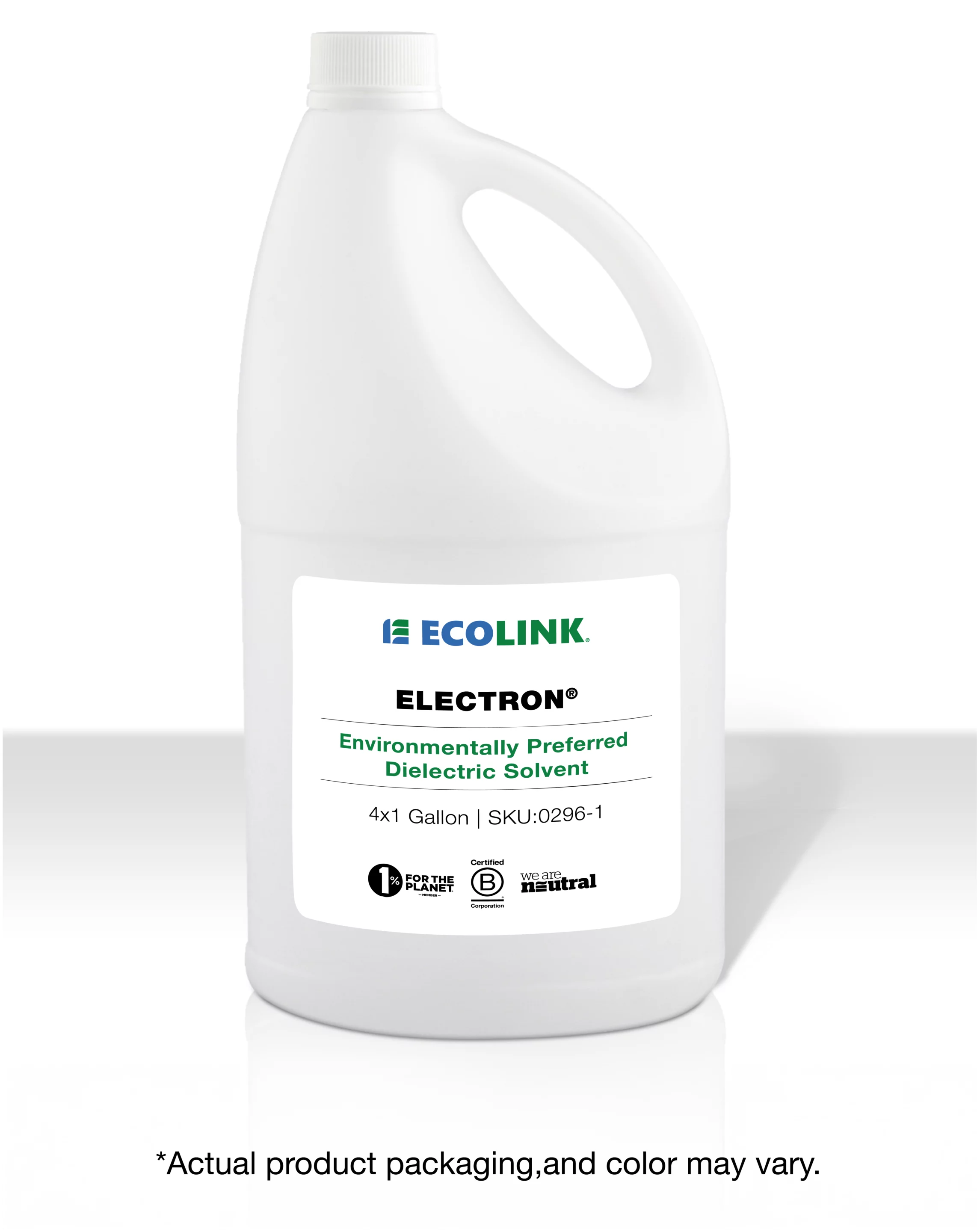ELECTRON® Environmentally Preferred Dielectric Solvent is an exceptional solvent degreaser formulated without chlorinated solvents or other hazardous ingredients. The base for ELECTRON is a unique high-grade oil distillate, which provides its dielectric strength, allowing it to be used safely on all types of electrical apparatus. With its high flash point, ELECTRON provides an unprecedented degree of user safety. ELECTRON Environmentally Preferred Dielectric Solvent is strong enough to remove grease, fuel oil, carbon and organic resins yet safe on most plastic and rubber surfaces. Unlike other solvents, ELECTRON can be used without extensive protective equipment. Common sense chemical precautions are required.